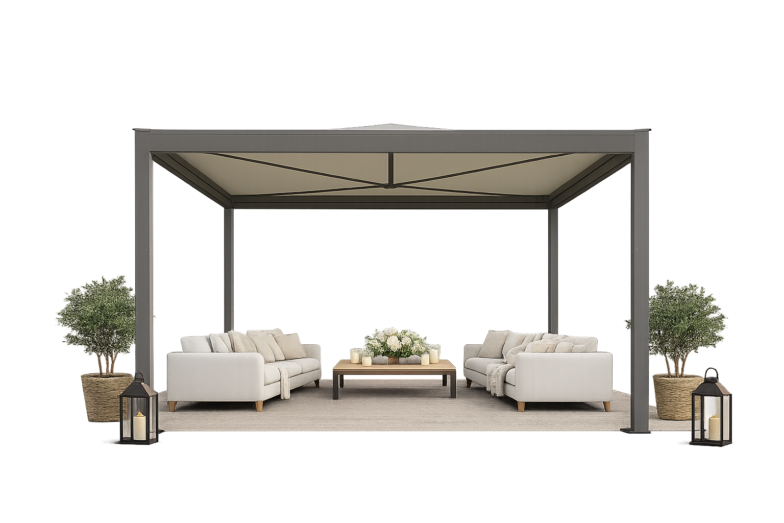 Pagoda Barbieri Qzebo 3×3, cu design modern și minimalist, adaugă o notă de clasă și originalitate oricărui tip de eveniment.