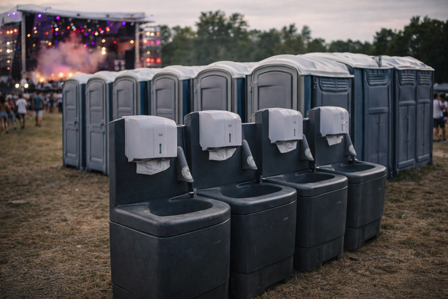 Lavoar exterior, rezistent și practic, ideal pentru evenimente și spații aglomerate, cu consum redus de apă.