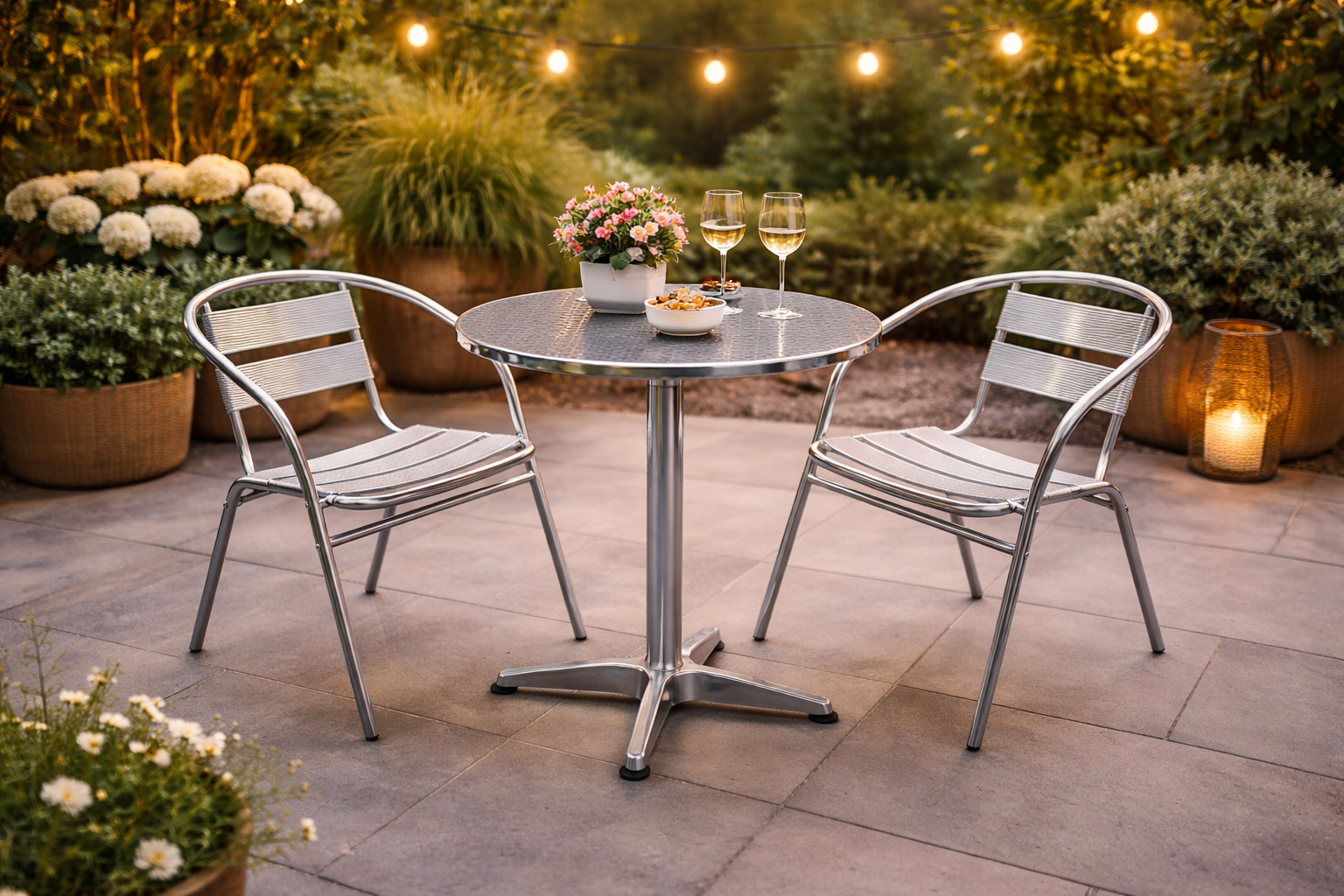 Set bistro din inox (masa + 4 scaune)